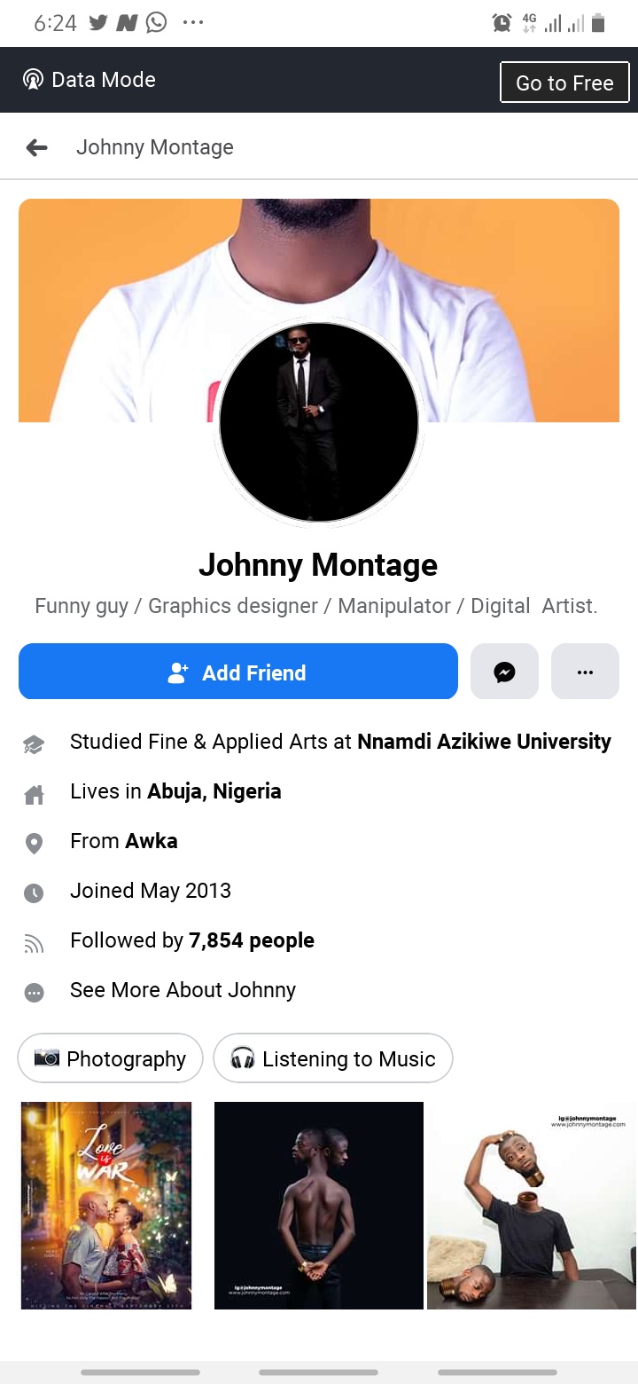 Check out his profile on Facebook