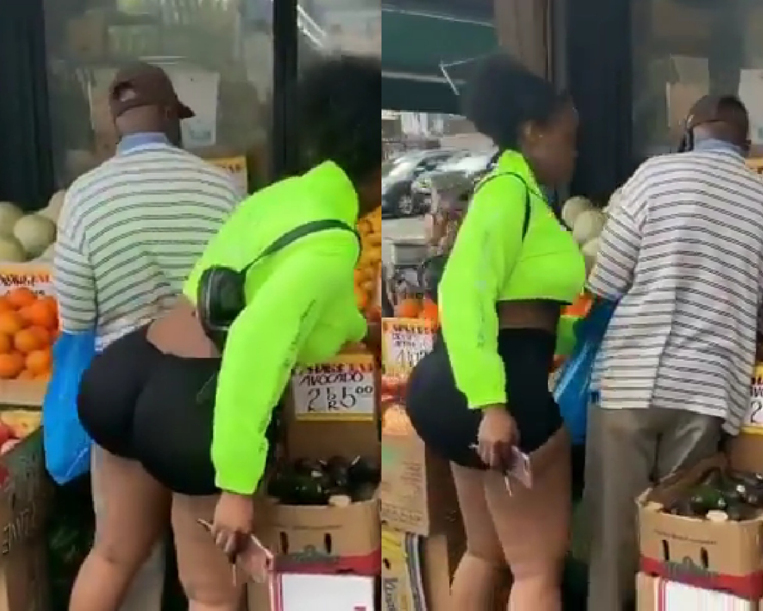 She intentionally rubs her bust over the man's back in a sexual manner, and this made the man uncomfortable, so he forced his way out to an open space to give room for the lady thinking she genuinely wanted to buy some fruits.