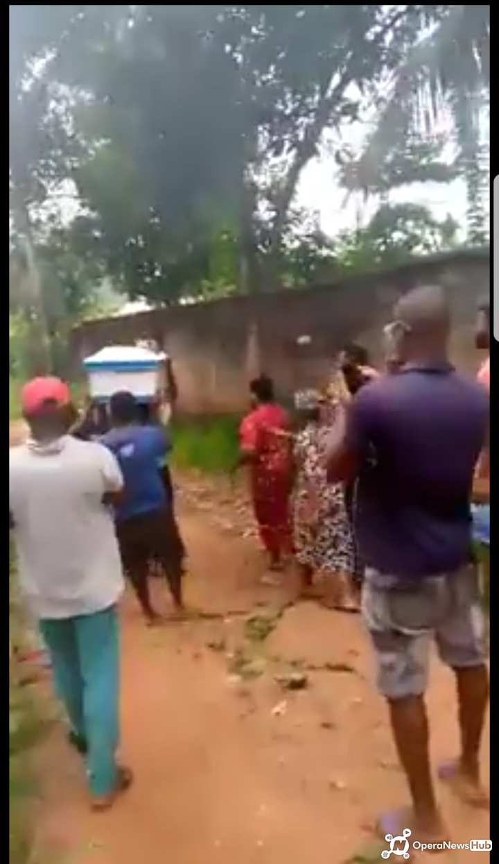 She returned this morning with the casket to bury the man but the husband's people caught her and made her to carry the casket back.