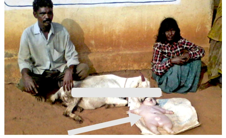 Bhaskar, a Farmer from Solapur Halmet was surprised when his goat gave birth to two babies one which had normal goat features while the other one was born a still baby and had almost all the features of a human being. The owner said that he had been rearing the goat for over 5 years and has given birth to 10 babies all of Whom were normal except for this one. Residents however advised him to dispose it of especially after this incident became talk of the town claiming that it could be a sign of a bad omen.