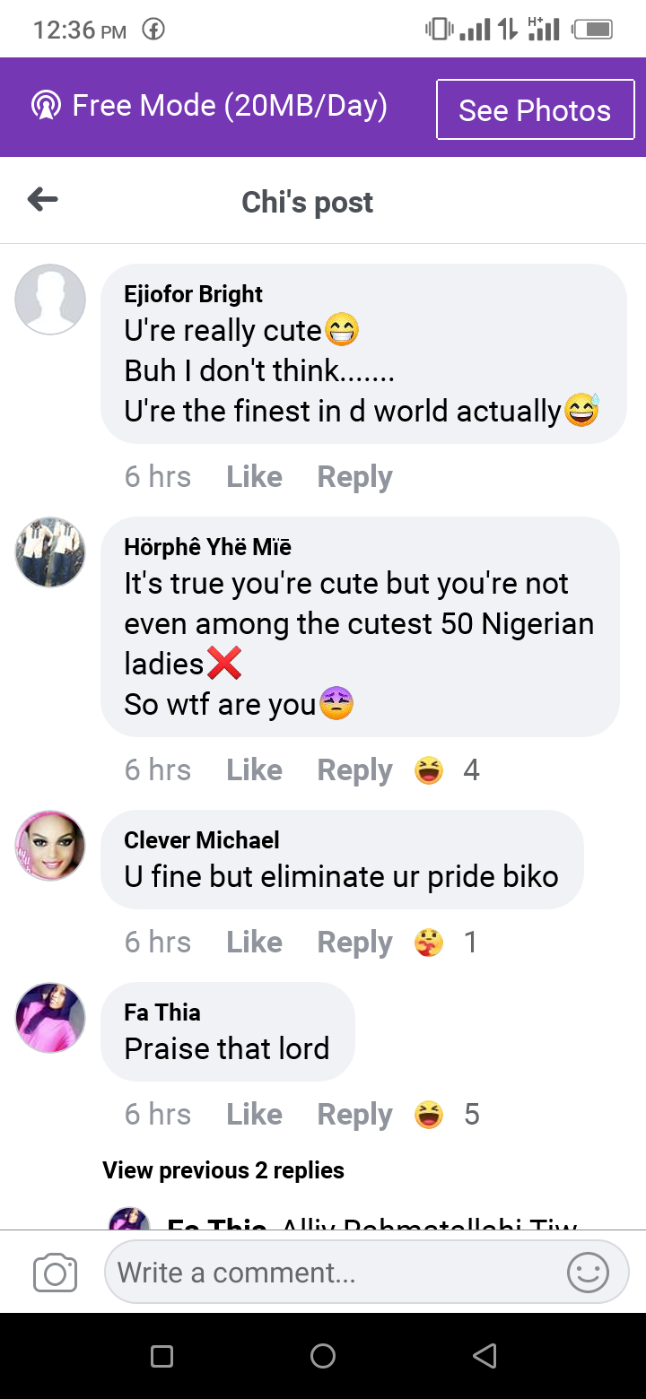 Since then reactions have been flying in from many Facebook users. Some have been appreciating her beauty while many others have been saying that she is no way near beauty.