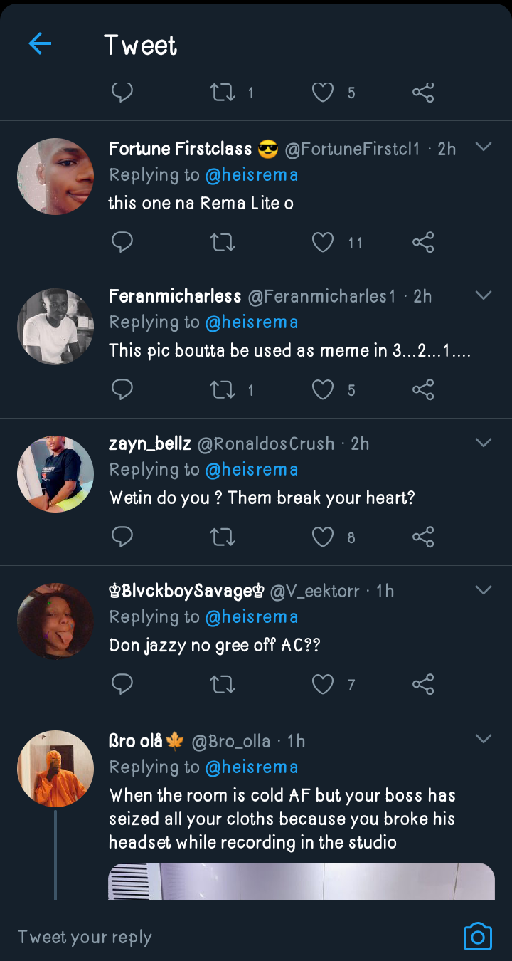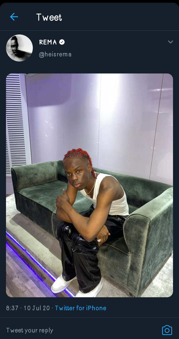 Divine Ikubor, professionally known as Rema, is a Nigerian singer and rapper who signed a record deal with Jonzing World in 2019. The artist uploaded a picture of himself on his verified twitter page which has gotten lot of his fans worried because of how he looked in the picture. The artist kind of look pale in the picture which he shared on his verified twitter handle which has gotten different reactions from his fans.