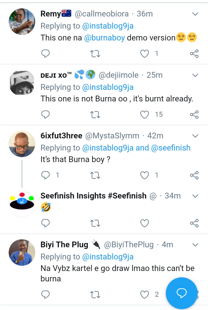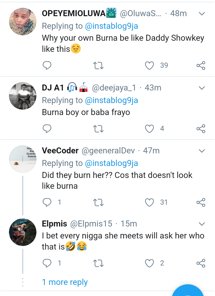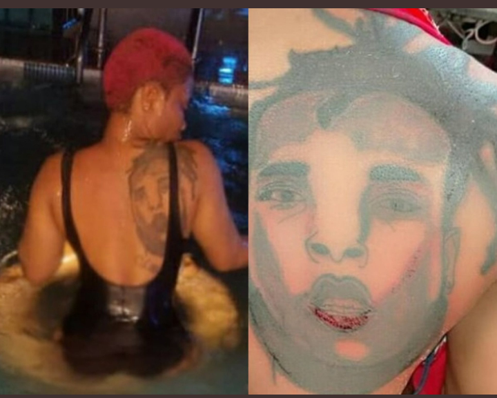 An unidentified fan of popular Nigerian superstar Burnaboy, released the photo of her back where she tattooed the face of her favorite musician. The picture however gathered a lot of funny reactions online, as one of the people that commented even said "this is not Burna boy o, this one is burnt already". Another one said it's not Burnaboy, but Burnaman. As at this time, Burnaboy may have not seen it yet, as he has not said anything or uploaded anything relating to this. Check out the photo below, and some funny reactions also.