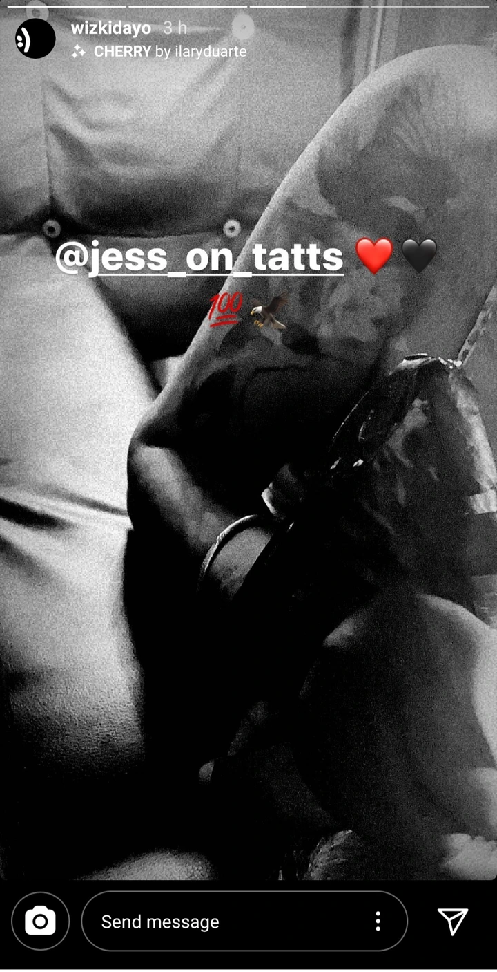 A day later, Wizkid took to his Instagram story to share two photos of him getting a new tattoo from Jess as well.