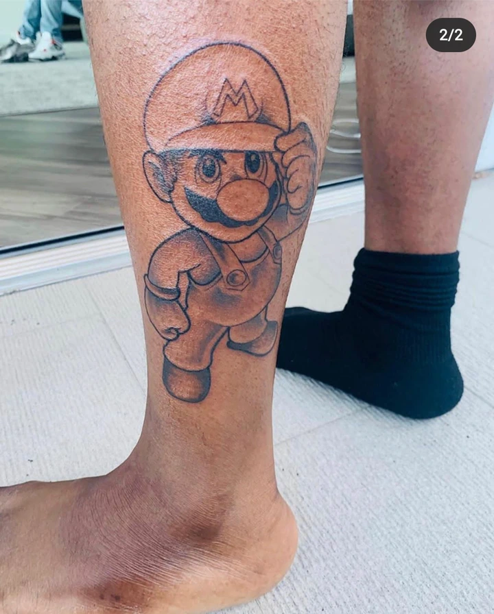 Davido drew a cartoon character on his leg and it's his first tattoo after some years.