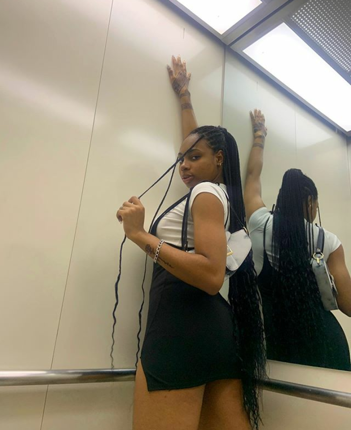 She was spotted via her official Instagram handle as she drops yet another amazing photos of herself. In the photo she shared, she was seen rocking a black and white outfit with a handbag and a pair of sneakers to match. Captioning the photos she shared, she wrote: