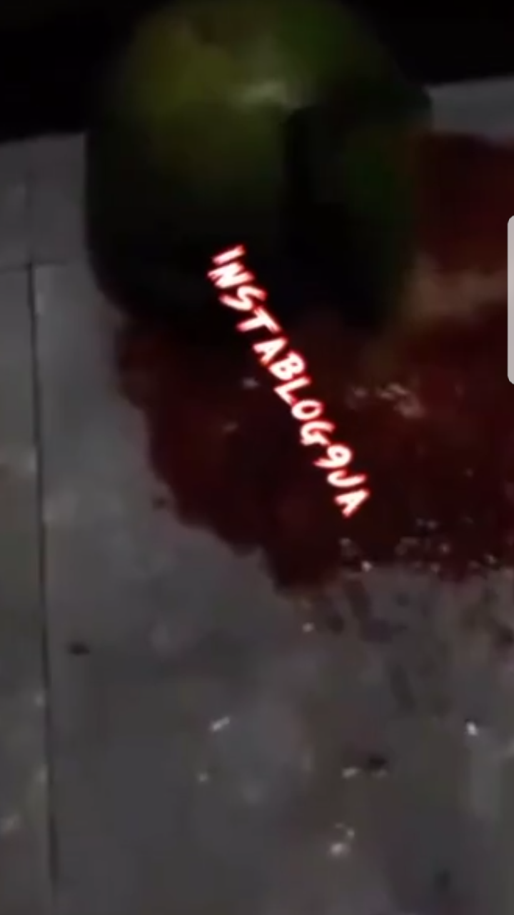 In the video, a woman was seen singing and praising God as she recorded a watermelon which was scattered on the floor.