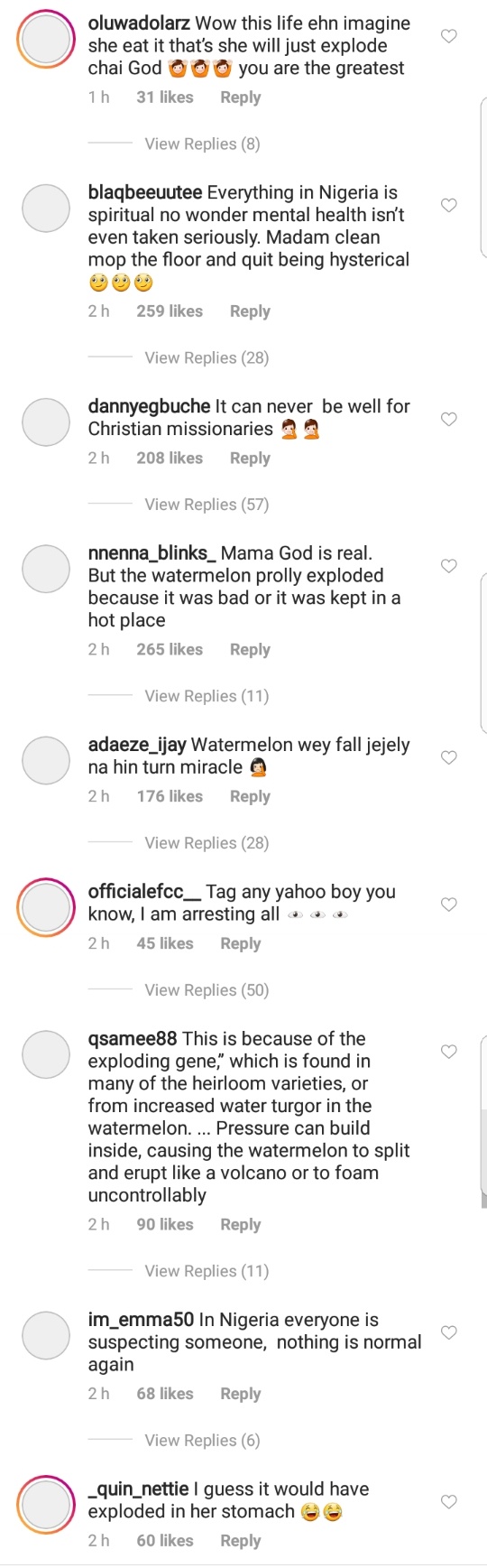 According to the woman who recorded the video, she explained that she bought the watermelon from an Aboki the previous day. She said that when she bought it, the watermelon was looking fresh and strong but on getting home, she decided to leave it till the next day so she could eat it before having breakfast.