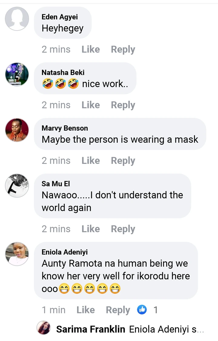 This picture has caused a stir online. A Facebook user commented, "She is a water spirit". Another Facebook user did not waste time to debunk the idea that she is a water spirit.