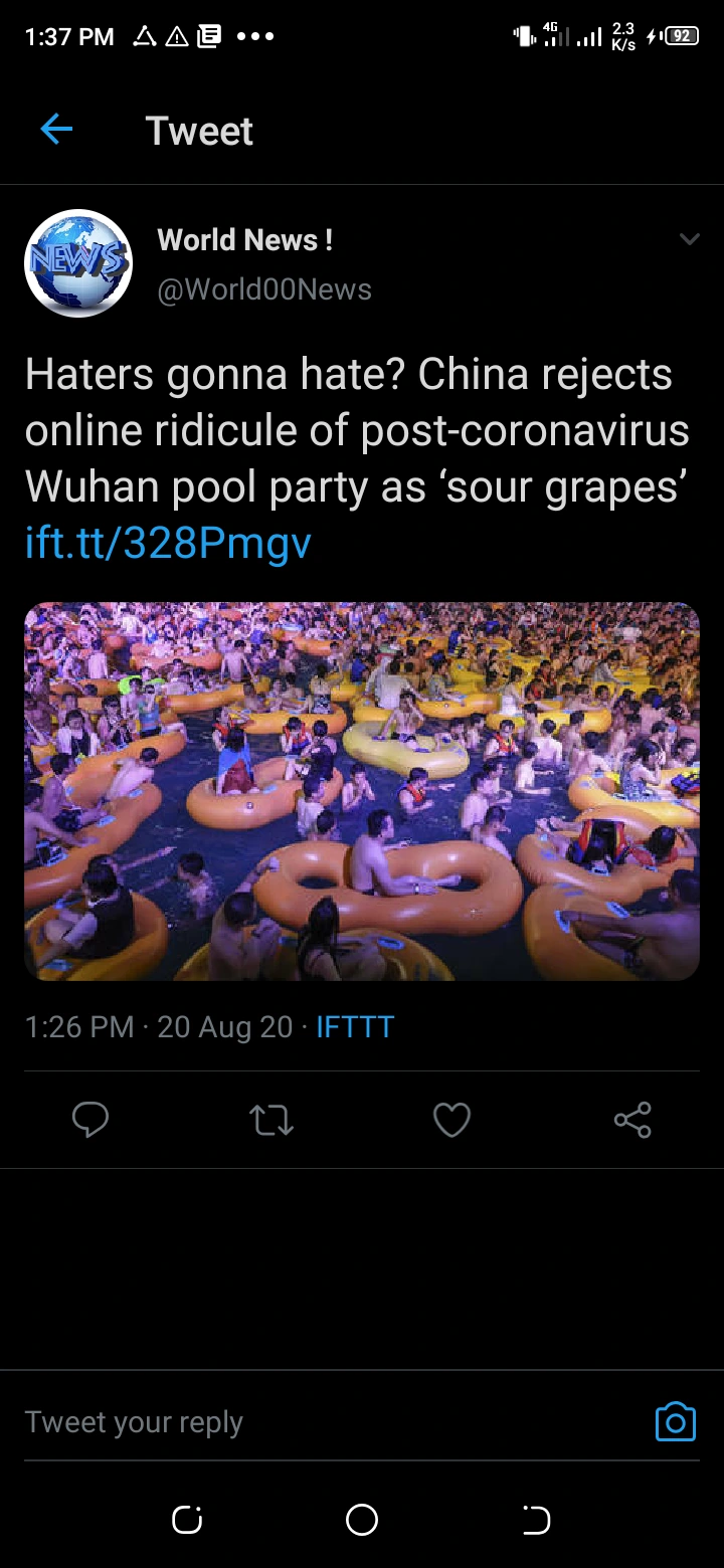 Earlier today the 20th of August 2020 the Chinese government defended the wuhan pool party claiming that their country has won the war against the corona virus.