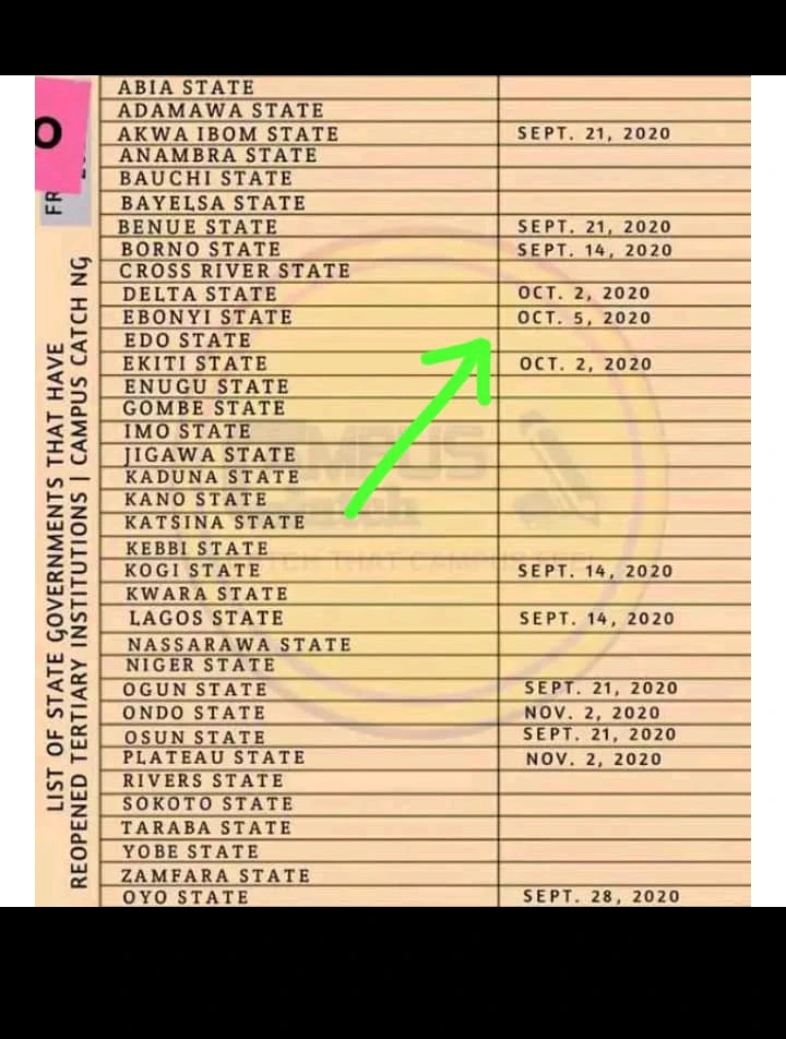There are also some states that have decided to reopen their State tertiary institutions today which is Monday.