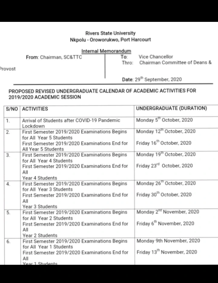 Here is the proof of the memo that was signed by the registrar of Rivers State University instructing students and staffs to return back to school today being Monday.