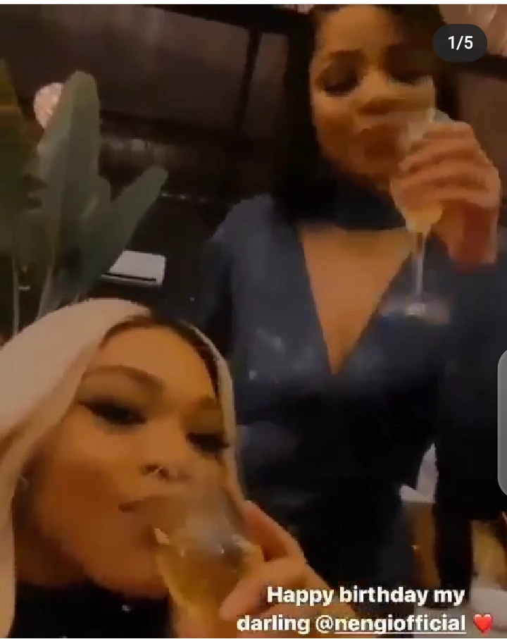 Nengi first had a nice dinner with her friends before moving to the after party. During the party, videos of her dancing and been sprayed money was seen. The 23 year old reality star seems to have enjoyed her day as she was all up and smiling in the pictures.