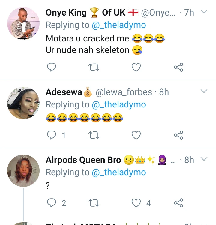 So, while many social media girls were busy doing the challenge, a lady identified as Motara sparked reactions when she uploaded her own silhouette challenge.