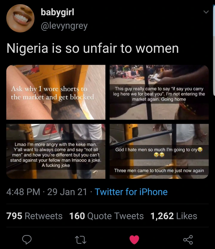 Truly, one of the serious problems Nigerian ladies are facing is molestation from Men. Despite numerous narrations from Nigerian ladies who are victims of molestation from men, sadly the victims of this act keeps on rising daily. Another lady who was a victim of molestation has heartbreakingly shared on social media how she was molested.