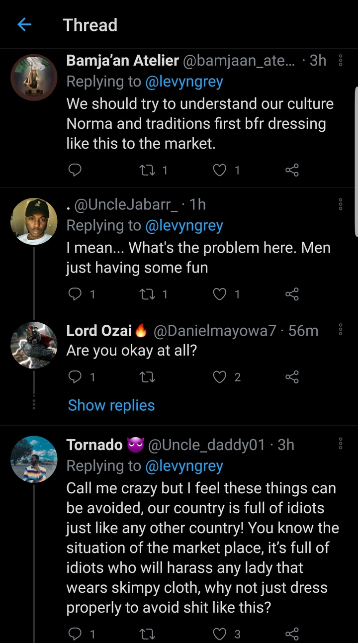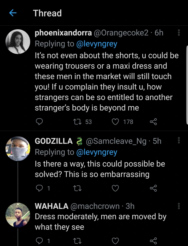 This lady who claimed she wore shorts to the market also added that she was touched multiple times by unknown men while she was in a tricycle.