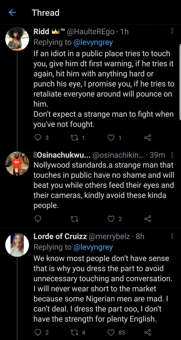 My Opinion: As they say "what is not right, is not right", Nigerian men can do better than this, molestation might cause "fear of men" in some ladies or harm the victim psychologically. Also, Ladies should not hesitate to report molesters to the police.