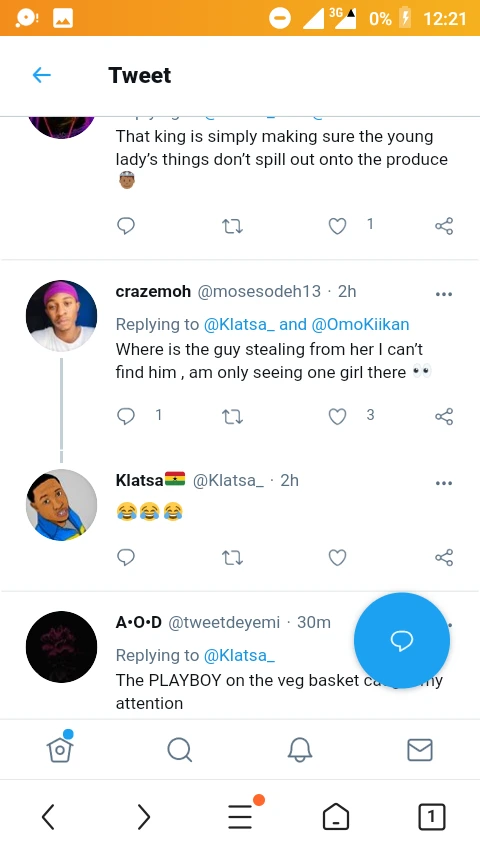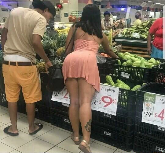 Photo of a lady trying putting a short gown, and trying to pick up something in a super market surfaced on Twitter, and it has gotten a lot of reactions from Twitter users. In the photo, a guy could also be spotted next to her which some thought could be her boyfriend. However, some of those who reacted did not takw cognisance of the guy who was peeping through the lady's bag.