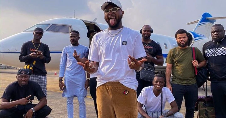 Reactions after Davido was spotted sitting on the floor in a photo with his team in America