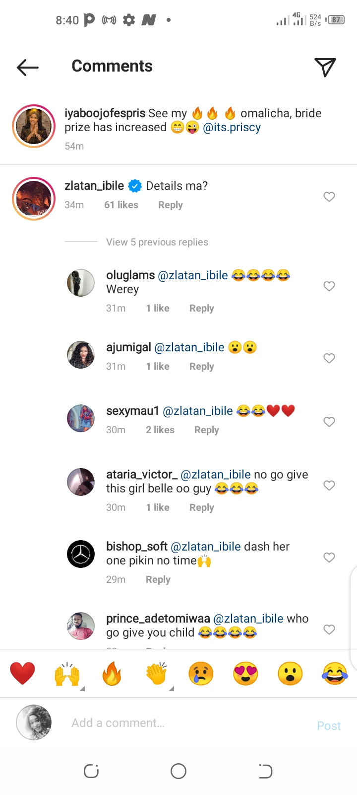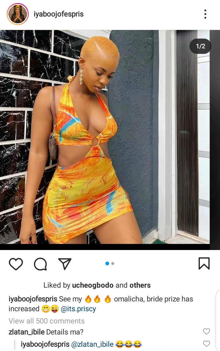 After Iyabo Ojo shared the photos of her daughter on her Instagram page, popular Nigerian Musician, Zlatan Ibile took to the comments section to ask a very sensible question from her. The musician asked for the details of her daughter's bride price, since she said that her bride price has Increased. In his words he said "Details ma". This actually means Zlatan might be interested in Iyabo Ojo's daughter, Priscilla.