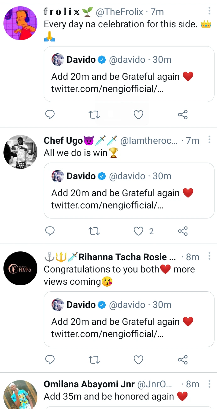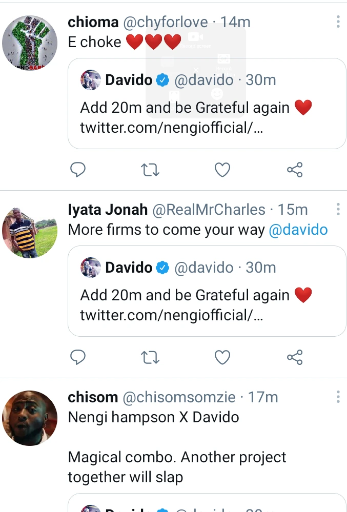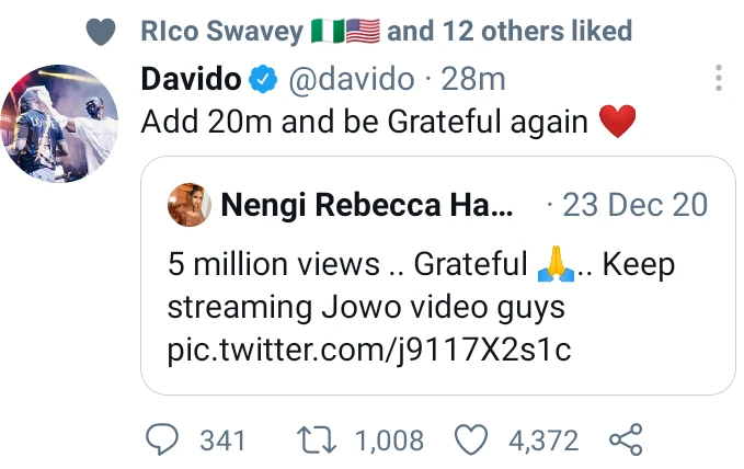 However, Davido featured Nengi as a video vixen in his music video title Jowo, so Davido took to his social media handle to reply Nengi after 3 months, according to him he said that Nengi should add 20 million to the views she was already grateful for when the music video surpassed 5 million views.