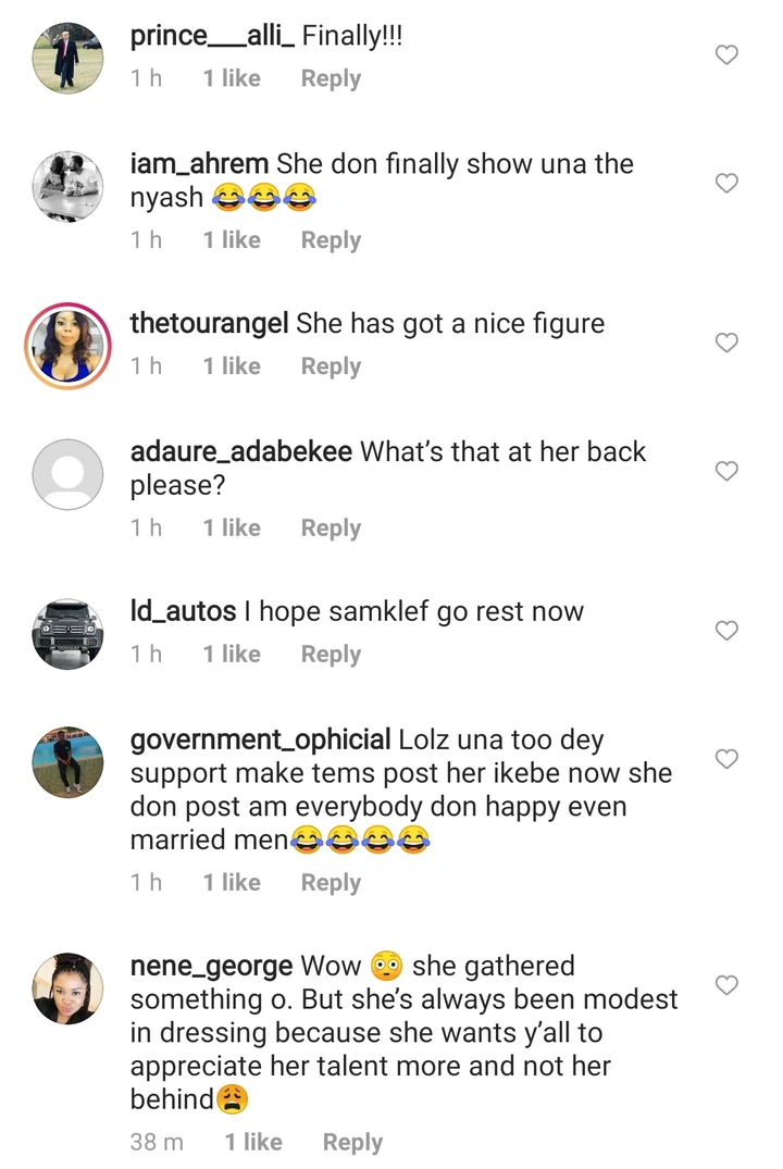 After the photos were shared on Lindaikejisblog, a lot of fans seemed to notice something in particular. Most of them made reference to her backside, stating that this was the first time the artist would be sharing such a photo online.