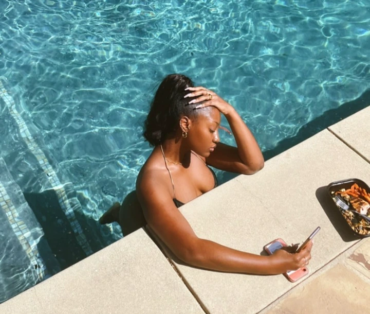 "She Don Finally show us" , SeeReactions as Tems poses in a swimming pool (Photos)