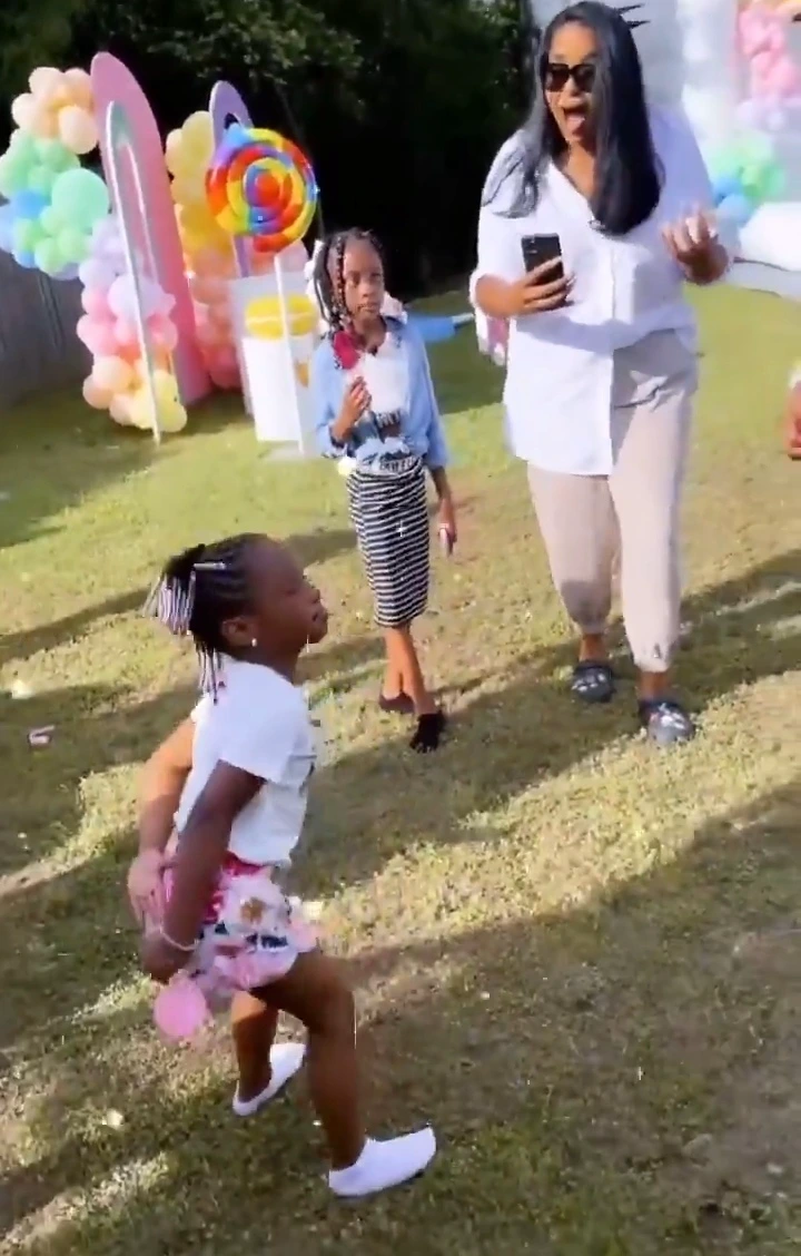 However according to viral video of the birthday party, showed what Davido did to his daughter Hailey for trying to twerk at her birthday party.