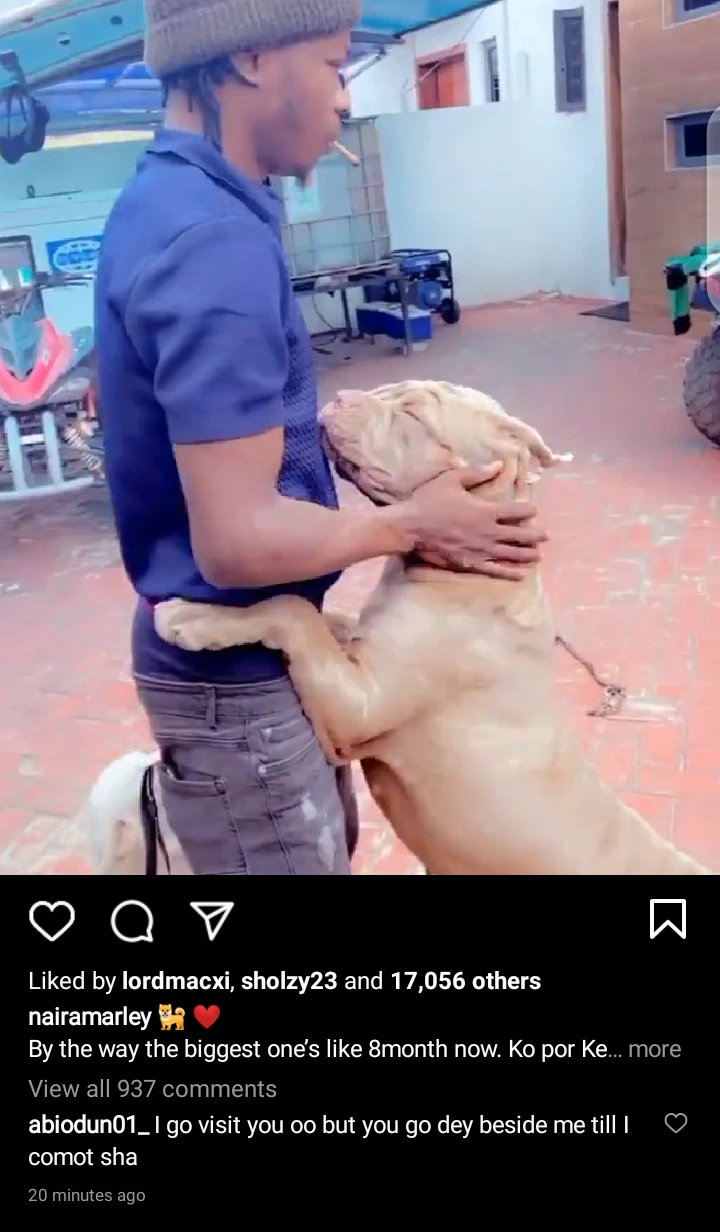 Nigerian controversial singer and songwriter, Azeez Adeshina Fashola who is professionally known as Naira Marley has taken to his official Instagram page to show off the moment he played with his dogs in new video.
