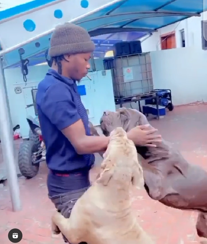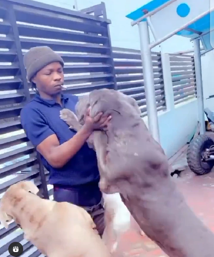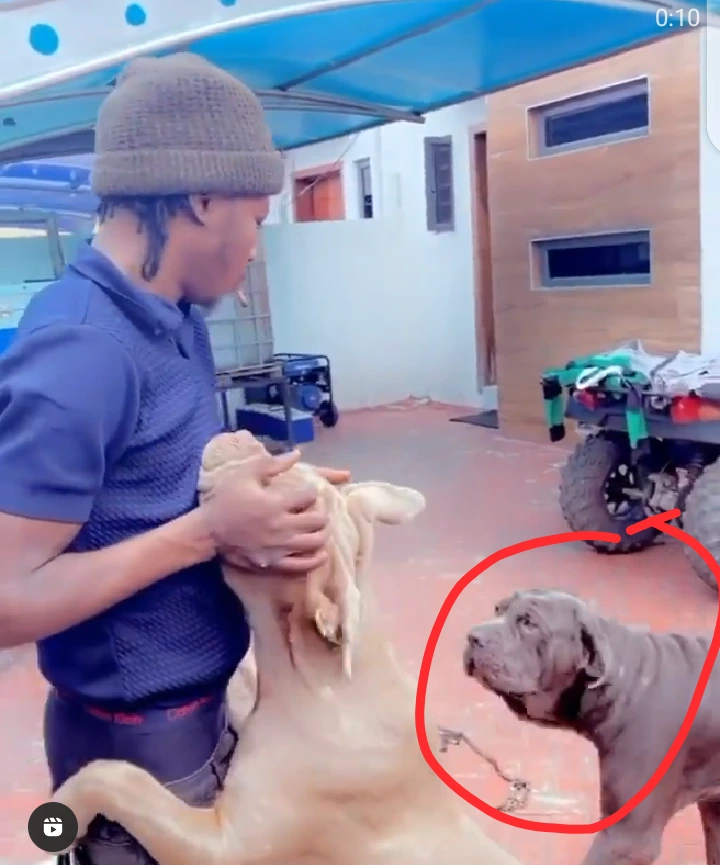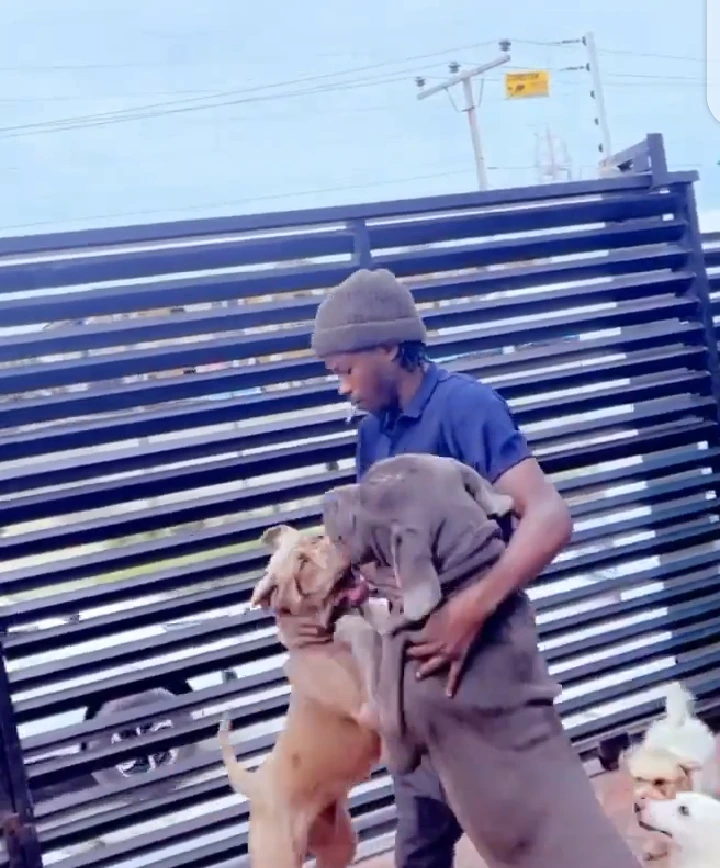 As Naira Marley showed up, not less than three dogs rushed to him and this is a common way dogs behave whenever they see their owner. Besides, the dogs could be seen in the video competing for Naira Marley's attention.