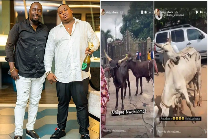 Popular influencer and socialite, Obi Cubana in a recent visit gifted 46 cows to his friend and former boss Mr Obi Cubana. Obi Cubana who is the CEO of Cubana Group recently lost the mother. There has been a lot of plans for a very high profile funeral which has kick started in Anambra state, his hometown.
