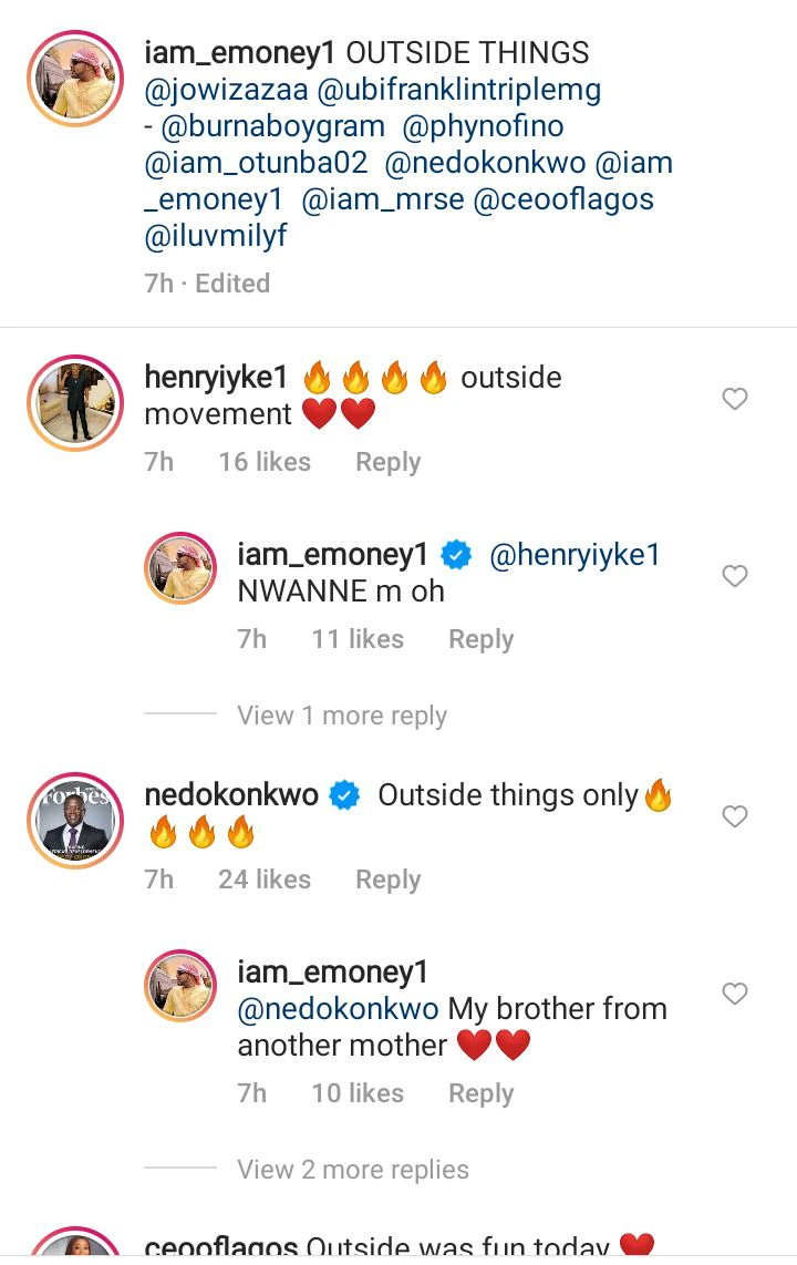 Anambra State business mogul, Chief Emeka Okonkwo also known as E-money shows off controversial photos of the party held in his hometown, Uli Central as he arrived today with Burna Boy, Phyno and other Igbo businessmen. His friends, family members and well-wishers rushed to the comment box to welcome him home.